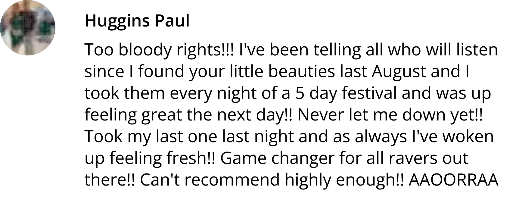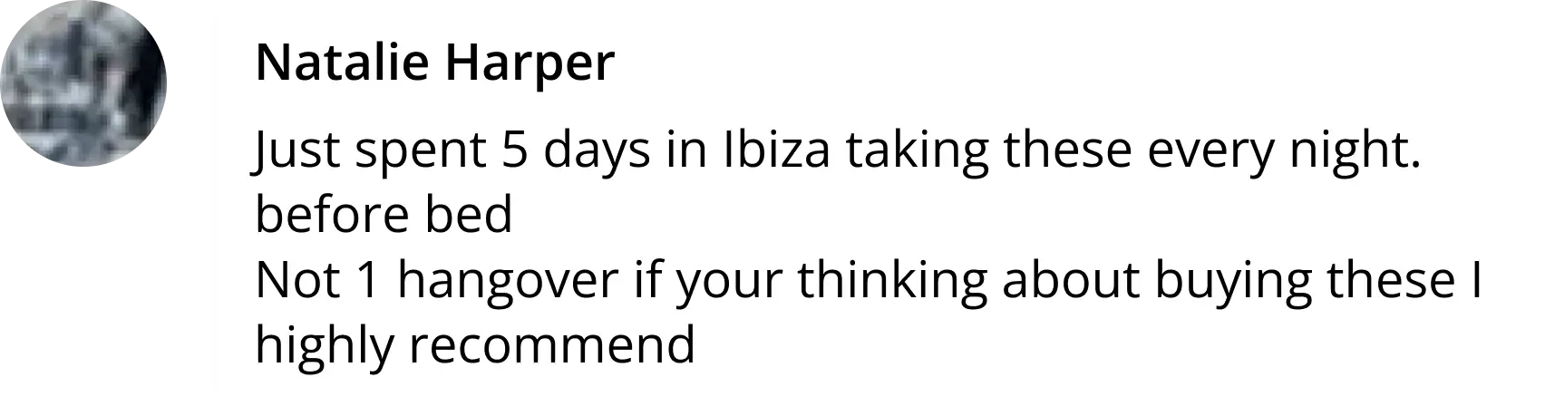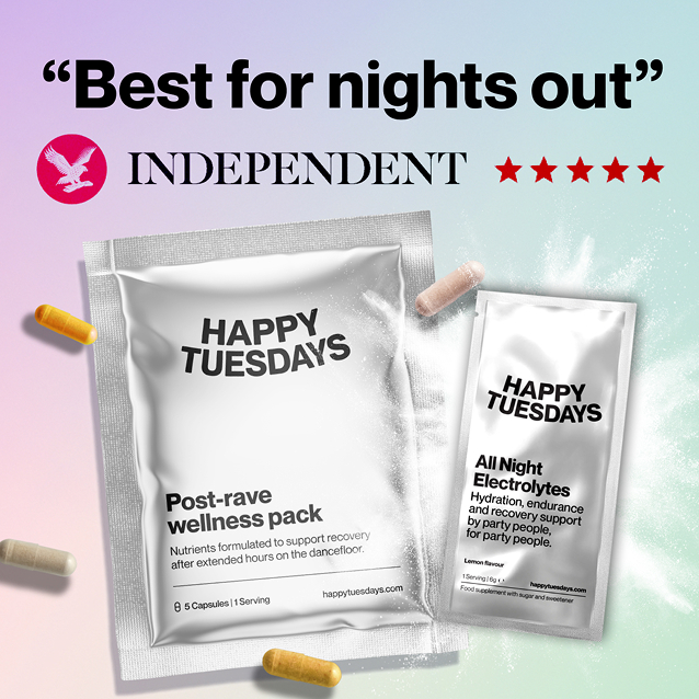 "I've had a subscription with Happy Tuesdays for over a year now because they make such a difference to how I feel after festivals and nights out. I leave them on my pillow so I don't forget to take them, and they hugely enhance my mood and energy levels over the following few days. Several of my friends swear by them as well. One pack is less than the price of a drink, so it's worth investing in something healthy for your body after spending (much more) money on damaging it!"