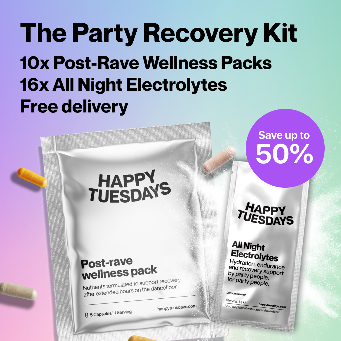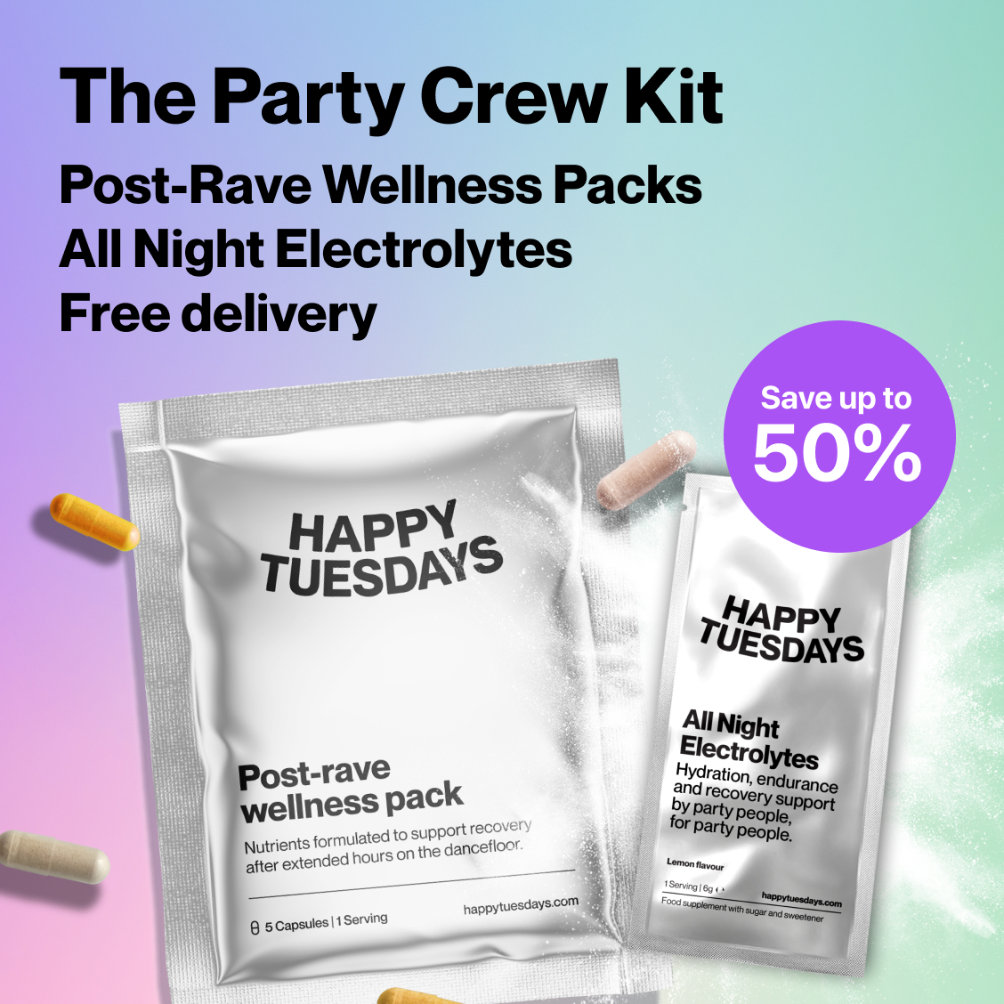Even better - take with your Post-Rave Wellness Packs to supercharge your party recovery.